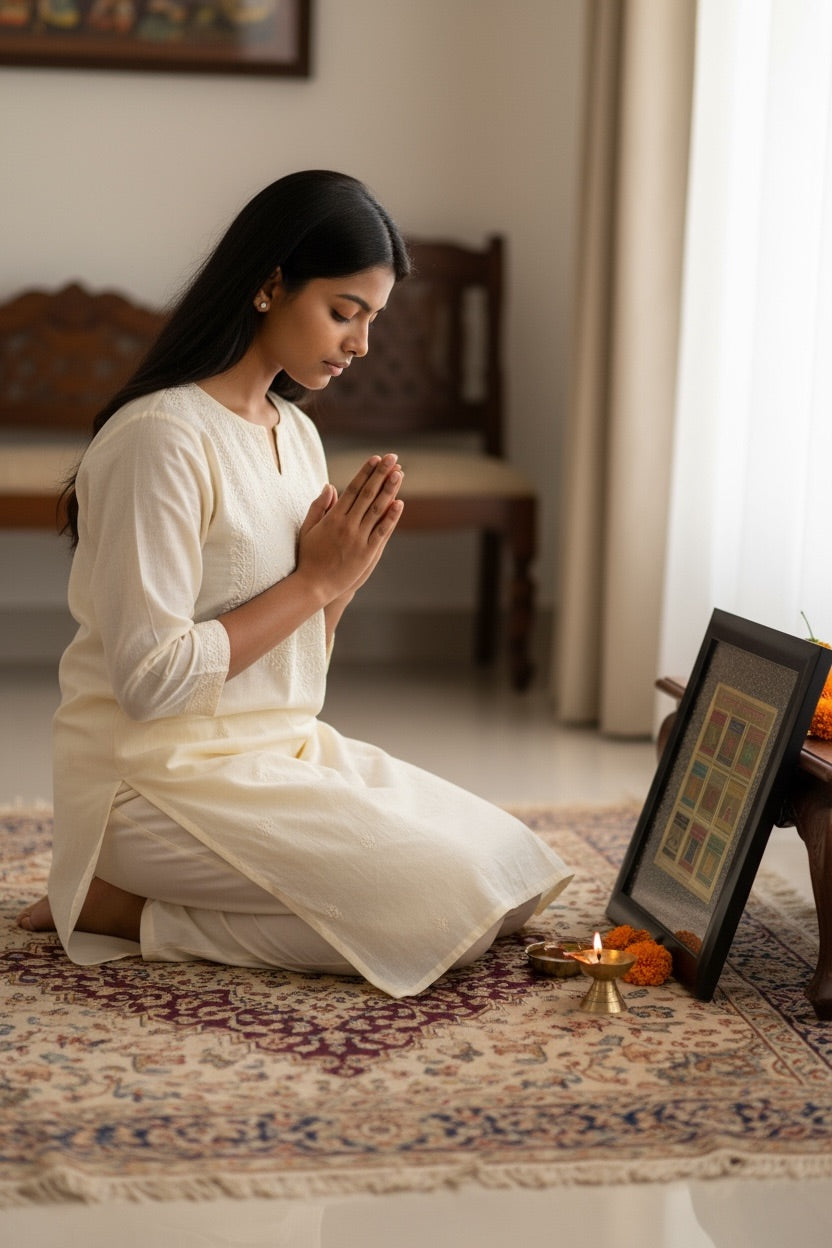 Light a diya and incense before the yantra every morning.